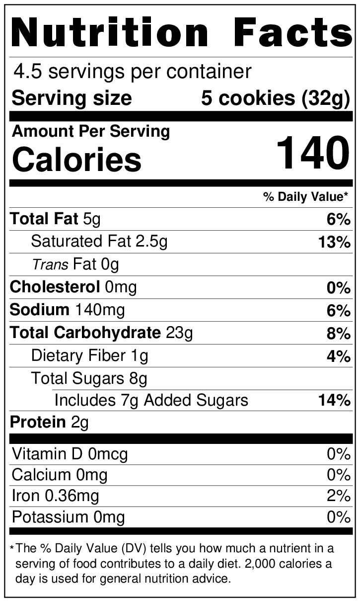 - Serving Size: 5 cookies