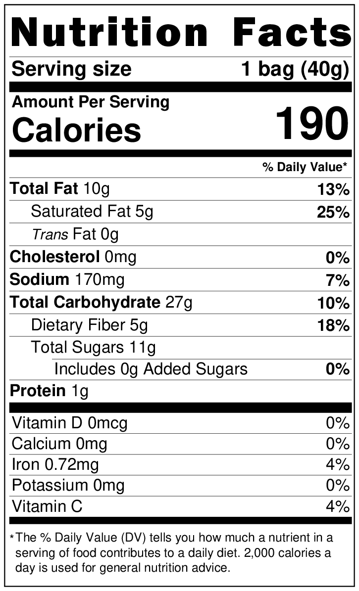 - Allergy Info: Produced in a facility that uses Peanuts and Coconut